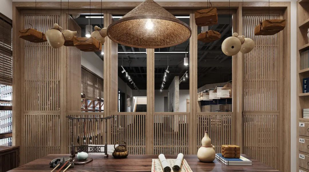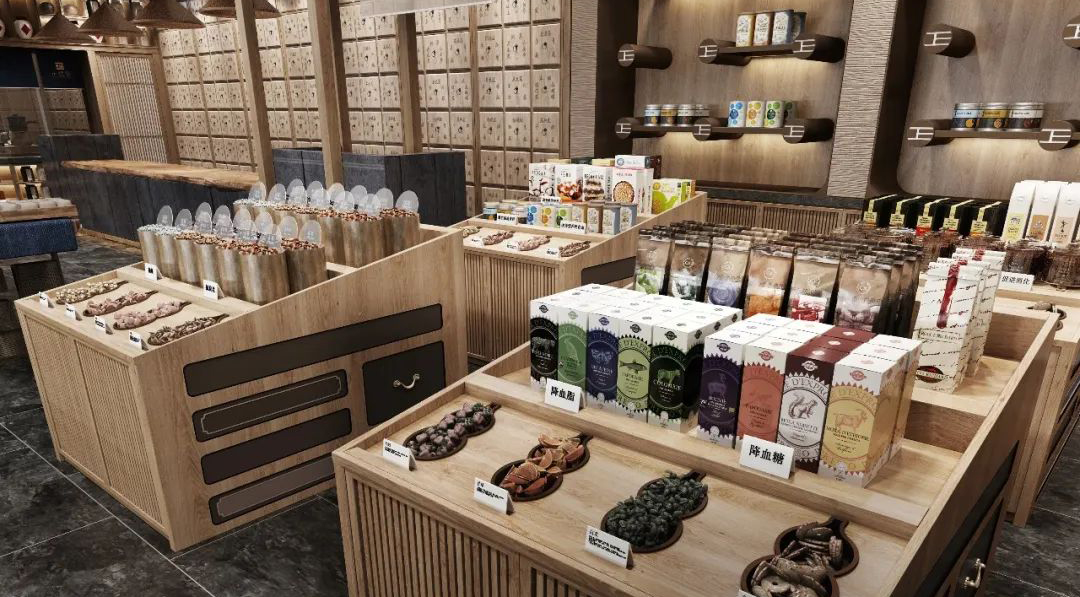 明清素工的案臺上方,懸掛著藥方和葫蘆,以及斗笠形狀的吊燈,每一處都體現(xiàn)著“諸藥以草為本”。
