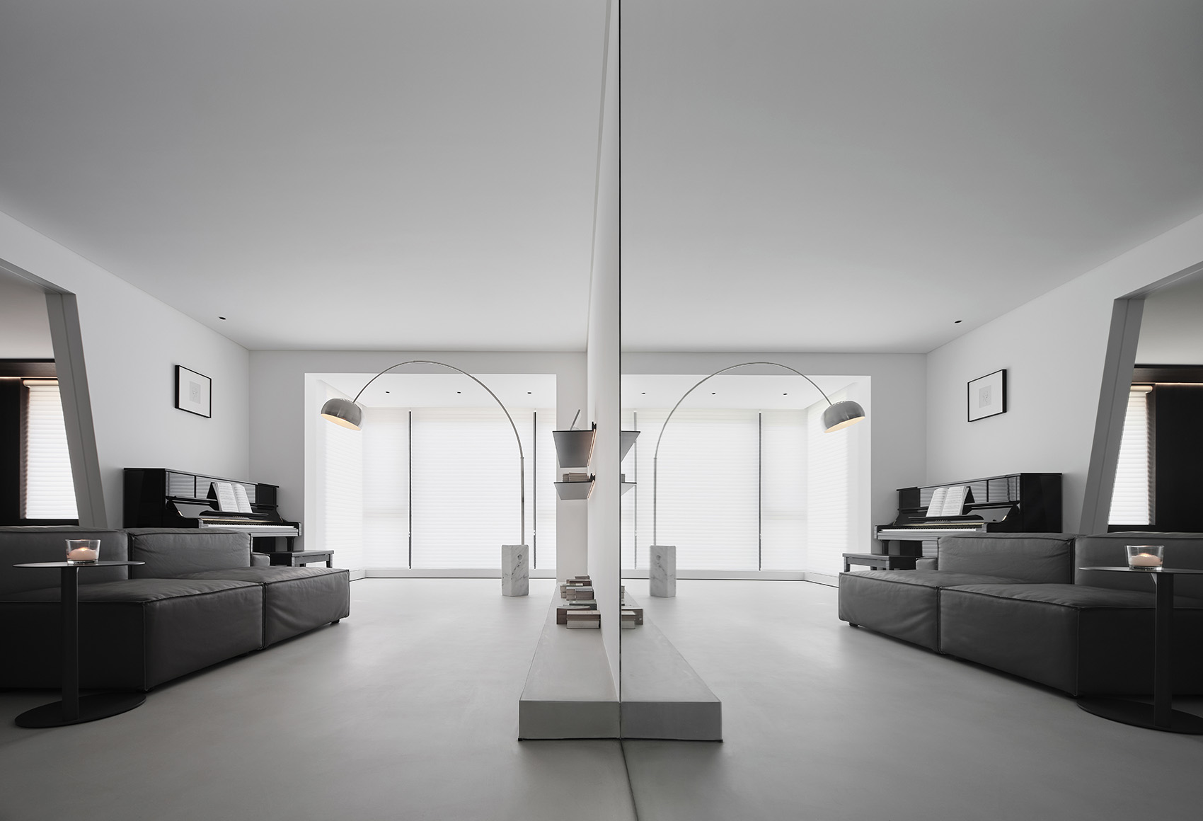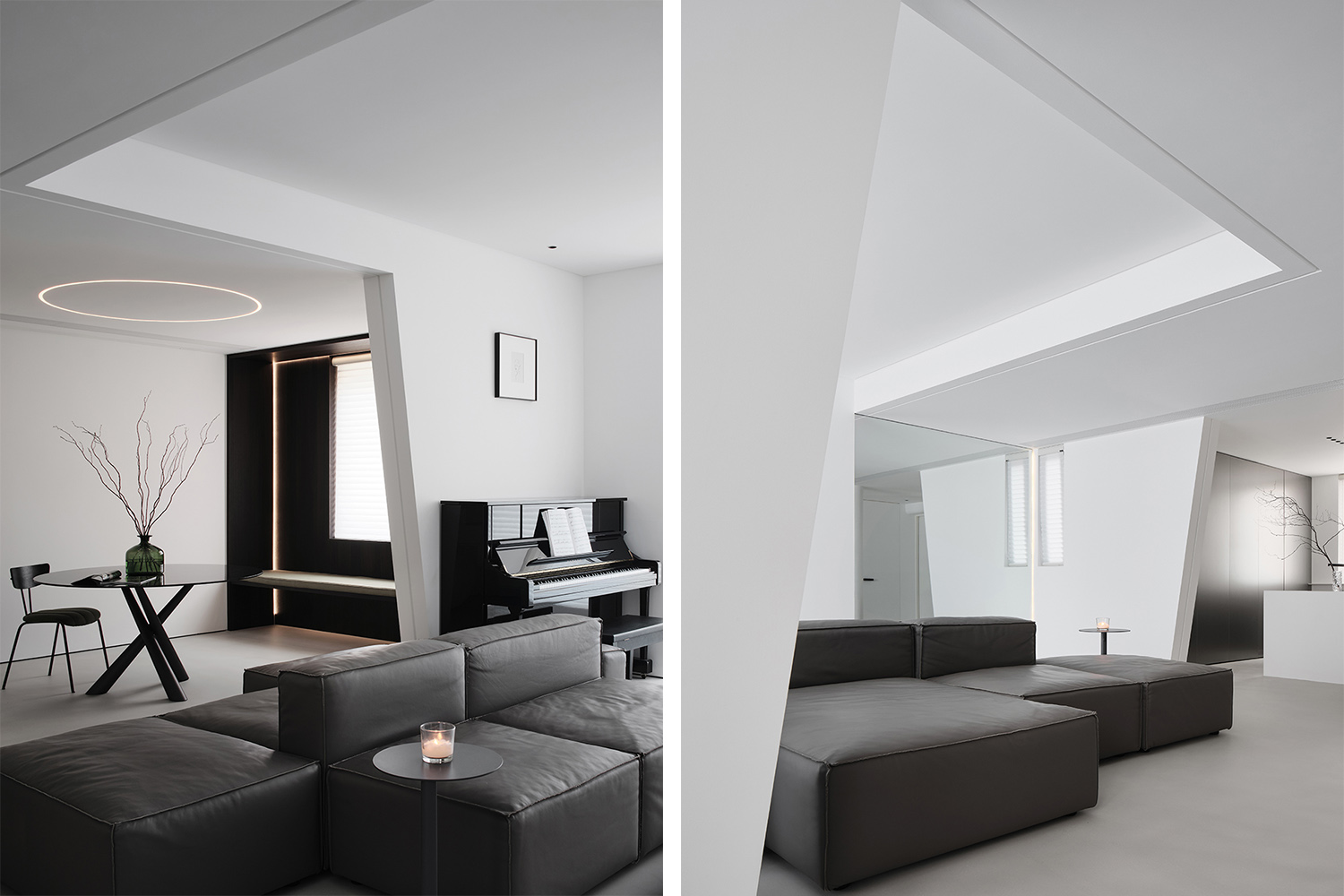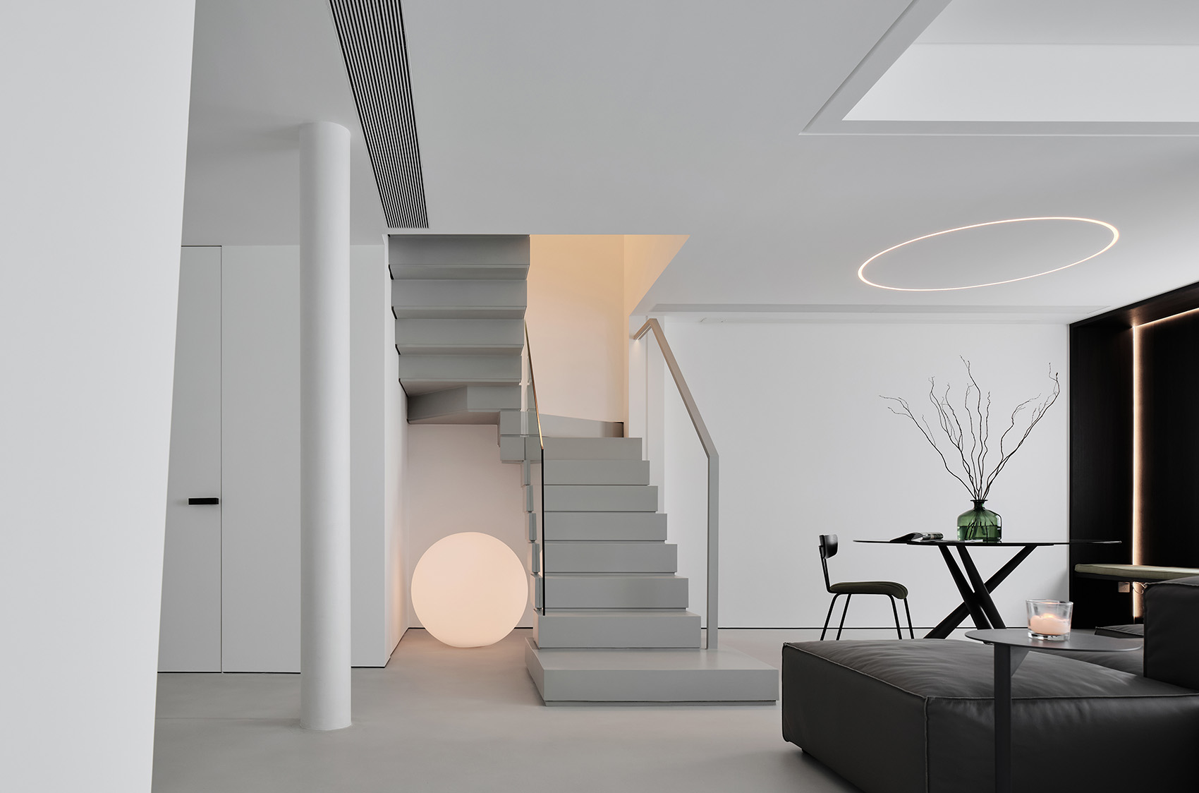 由外向內(nèi)的設(shè)計(jì)的同時(shí)由內(nèi)向外的設(shè)計(jì),制造必要的張力會(huì)讓入口更具魅力。人們平常活動(dòng)的平面空間之外,還有上、下部分空間所產(chǎn)生的拉力存在于住宅的縱向兩極,而這種拉力正是靠樓梯牽引,也正是上和下的空間變化讓我們的想象力有所去處。上樓或下樓時(shí),以此帶來(lái)的視角的改變,離開(kāi)常規(guī)的水平面。