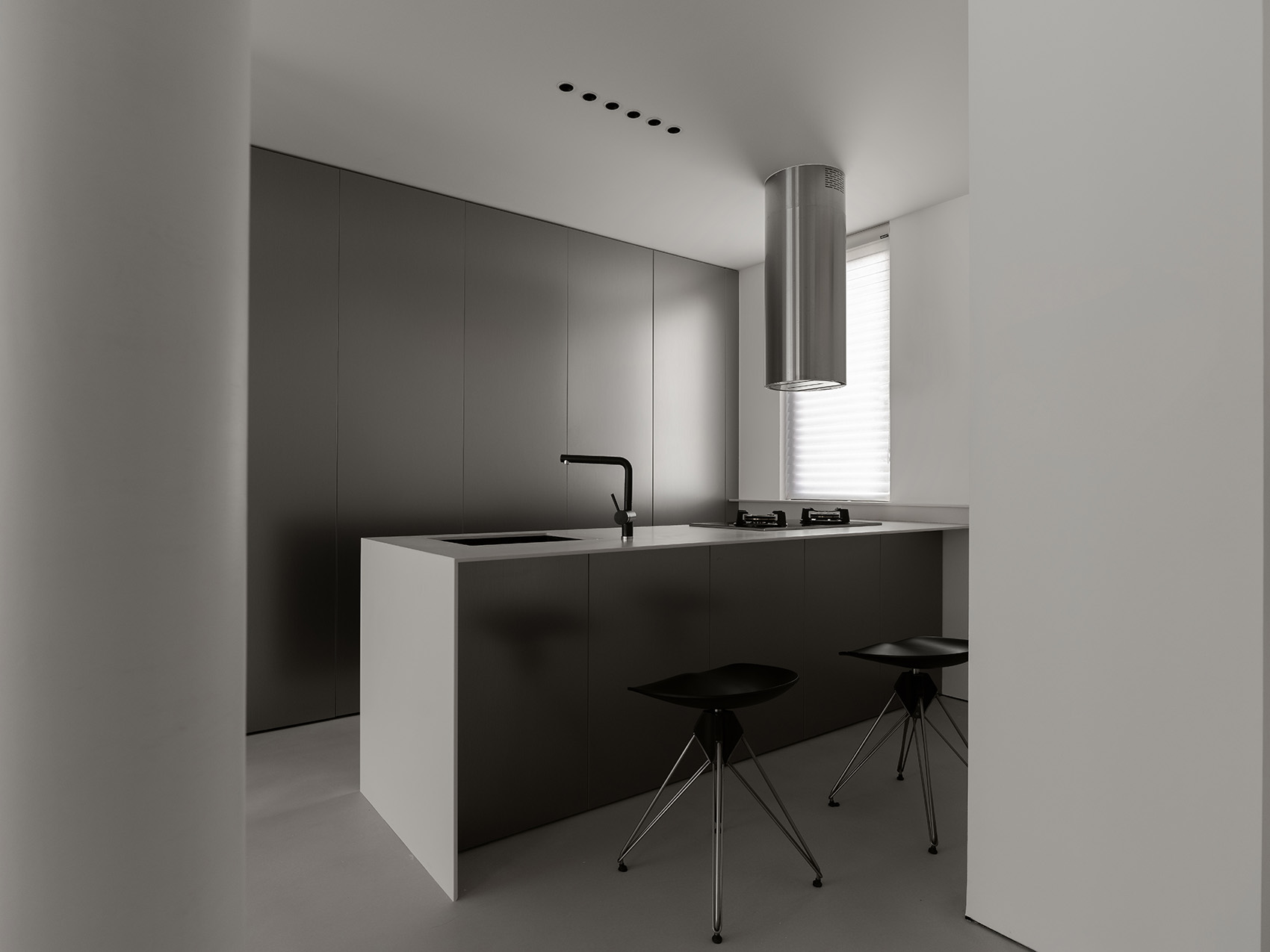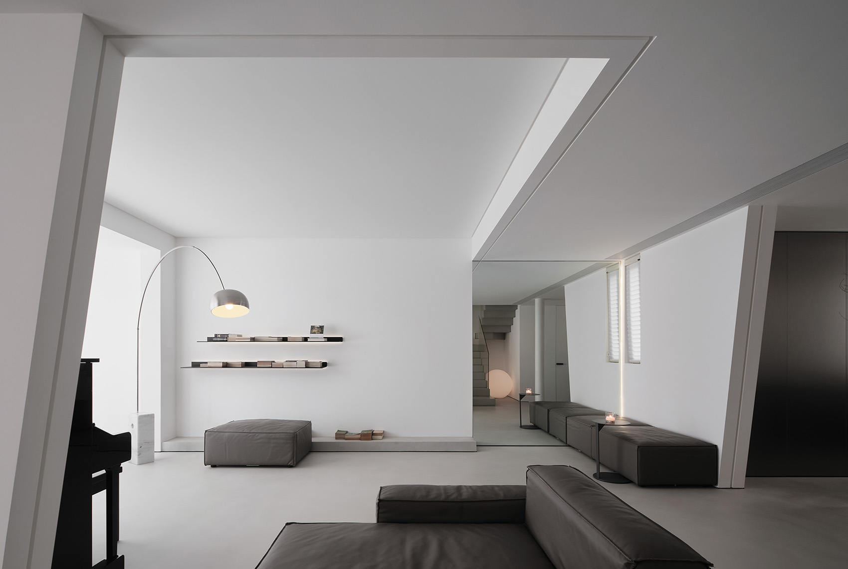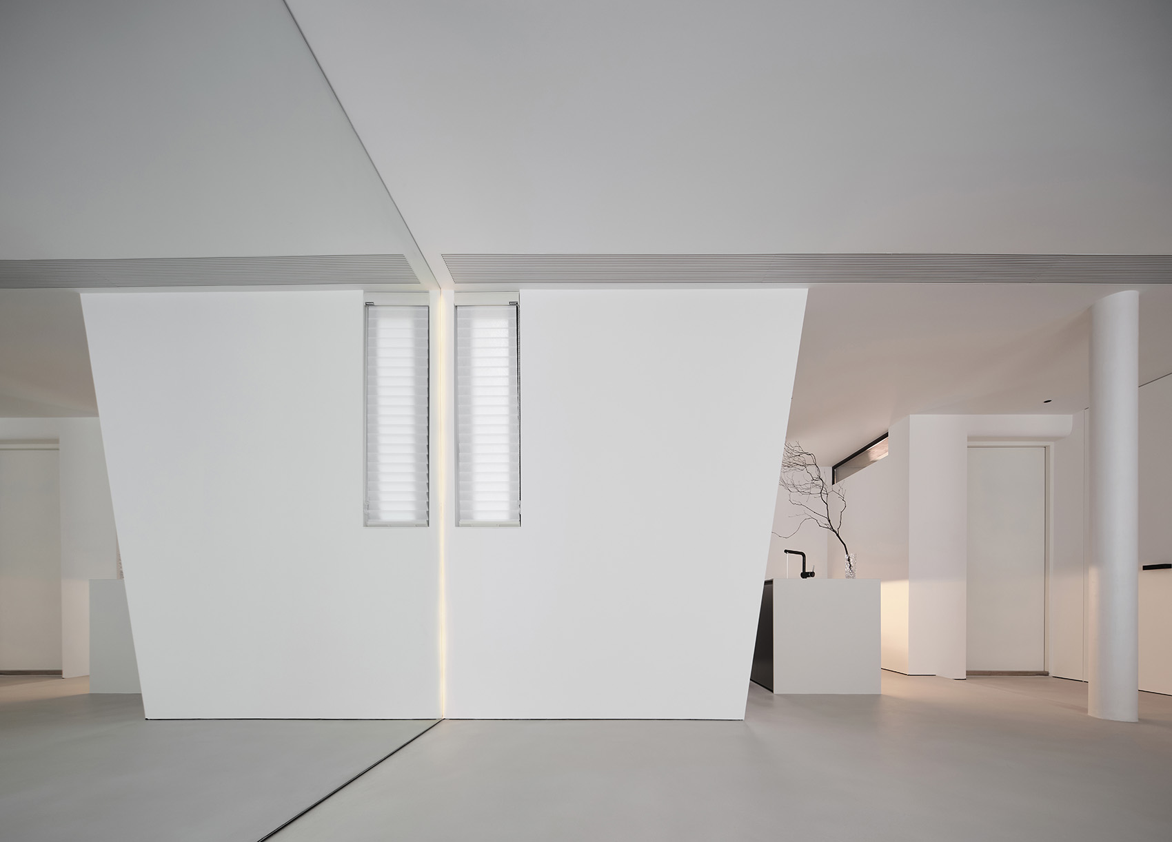 由外向內(nèi)的設(shè)計(jì)的同時(shí)由內(nèi)向外的設(shè)計(jì),制造必要的張力會(huì)讓入口更具魅力。人們平常活動(dòng)的平面空間之外,還有上、下部分空間所產(chǎn)生的拉力存在于住宅的縱向兩極,而這種拉力正是靠樓梯牽引,也正是上和下的空間變化讓我們的想象力有所去處。上樓或下樓時(shí),以此帶來(lái)的視角的改變,離開(kāi)常規(guī)的水平面。