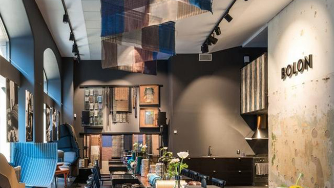 下面是Bolon位于瑞典的展廳環境,空間設計師為了更好的突出產品,將地毯應用到空間設計當中,還設置了